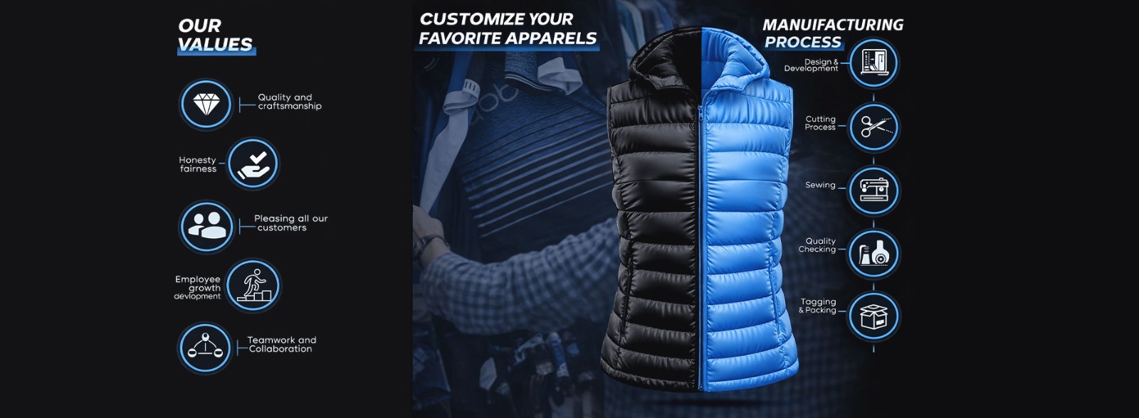 Confirm the garment collection, quantities per style, design, and prices to initiate the production process.